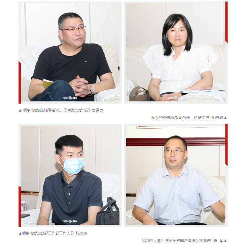 2022年6月22日下午,桐乡市市委常委、统战部部长穆海英率队来访我会,加强交流合作,深圳总裁网CEO沈洋、副总裁何一健陪同参加。我会会长郑汉明,常务副会长兼秘书长李楚芬,会长助理兼副秘书长谢建文等热情接待。深圳市大潮汕股权投资基金有限公司总裁陈华,深圳市侨交会投资管理有限公司副总经理兼运营总监屈慧等出席会议。会前观看了商会宣传片和侨交会宣传片。