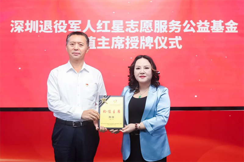 在仪式现场,市退役军人事务局局长张悦华为深圳美丽魔方健康投资集团董事长陈琼颁发深圳退役军人红星志愿服务公益基金轮值主席的聘书,深圳市关爱行动公益基金会理事长张占恒和市退役军人事务局的相关负责人为爱心企业颁发“关爱之星”牌匾和感谢信。