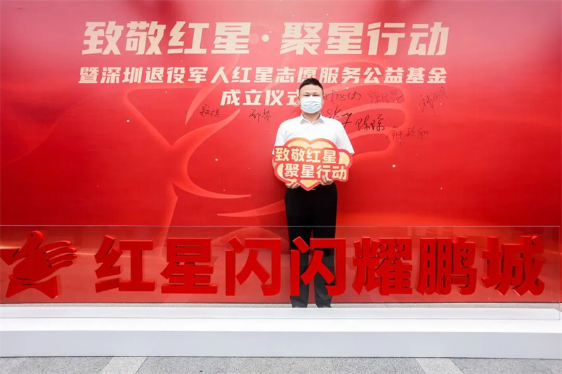 为关爱鹏城退役军人、致敬退役军人红星志愿者,壮大退役军人关爱共同体规模,9月23日,“致敬红星•聚星行动”暨深圳市关爱行动公益基金会·深圳退役军人红星志愿服务公益基金成立仪式在深圳市退役军人事务局隆重举行。市退役军人事务局、深圳市关爱行动公益基金会等单位领导及社会公益社会组织、爱心企业代表、红星志愿队、红星应急救援队等代表参加活动。受我会会长郑汉明委托,我会轮值会长林旭楠出席活动。