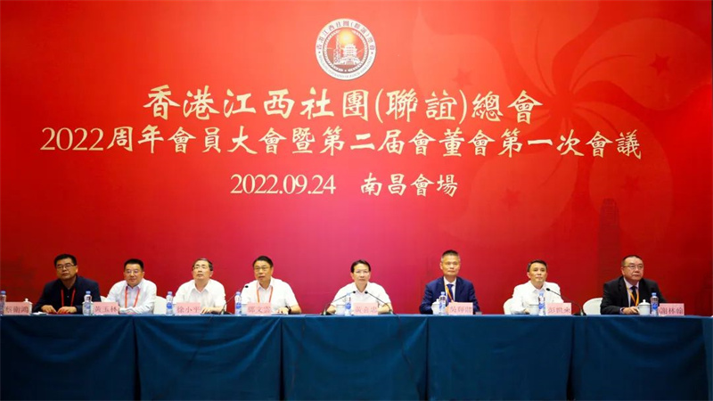 2022年9月24日,香港江西社团(联谊)总会2022年周年会员大会暨第二届会董会第一次会议圆满举行。受全球疫情影响,大会采用现场会议+视频连线的形式召开,分设香港、南昌、深圳三地会场。江西省委常委、省委统战部部长黄喜忠,江西省委统战部分管日常工作副部长彭世东,江西省纪委省监委驻省委统战部纪检监察组组长徐小平出席南昌会场,香港中联办社联部副部长、一级巡视员黎宝忠在线参会,江西省人民政府驻广东(深圳)办事处主任刘友龙出席深圳会场。总会创会主席团、会董会成员及会员乡亲,近300人参加会议,见证会议圆满举行。王再兴连任主席,吴辉体新任会长,他们共同表示,将带领新一届会董会坚守初心,加强团结,坚定支持「爱国者治港」,积极引领广大乡亲会员,关心国家大事、融入国家大局,为推动「一国两制」香港实践行稳致远作出更大贡献。大会由全国人大代表、总会创会主席熊建明,江西省政协委员、总会创会主席邓文云主持。