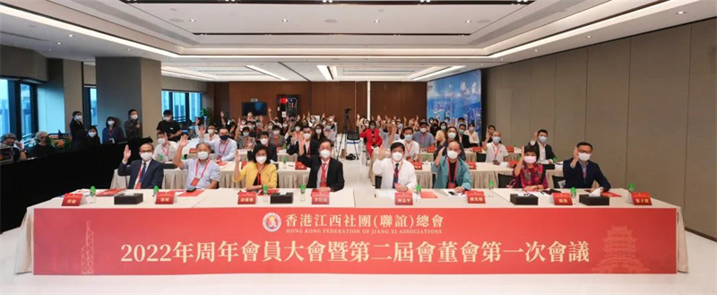 香港江西社团(联谊)总会2022年周年会员大会暨第二届会董会第一次会议圆满举行。此次会议,即是对总会成立以来的回顾、近期会务的梳理和活动总结,也是对接下来工作的具体部署,更是对未来的展望。相信在王再兴主席、吴辉体会长和新一届会董会的带领下,总会将更加团结一致、抱团发展、不忘使命,继续弘扬赣籍乡亲爱国、爱港和爱乡精神,在全面促进赣港两地交流与合作方面再上新台阶,共同开创美好的新篇章!