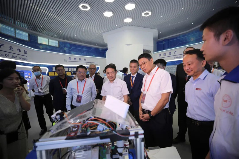 ▲黄喜忠部长及南昌会场参会人员在总会创会主席黄玉林创办的江西应用科技学院考察调研
