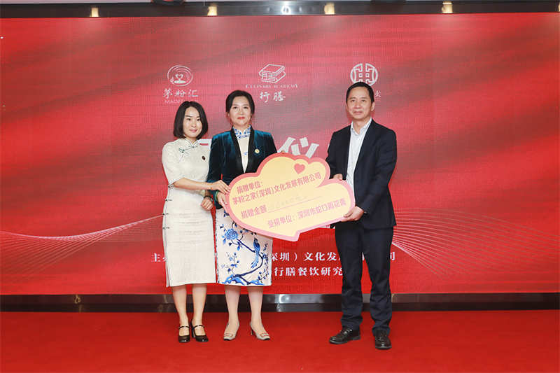 在现场,我会常务副会长卢德厚代表雨花斋接受拍卖善款。我会副会长吴喜强代表广东中深拍卖有限公司与茅粉之家(深圳)文化发展有限公司签约,达成战略合作,合作共赢。