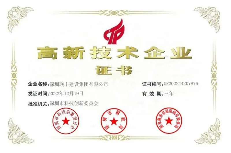 联丰建设集团先后获得全国建筑工程装饰奖30多项,国家级科技创新成果及科技示范工程奖20多项;荣获“全国建筑工程装饰奖设计奖”等设计类奖项30多项;连续多年入选中国建筑行业百强榜,其中2021年获得全国建筑装饰类第23名的排名。2022年深圳500强企业排名中,集团位列第297位。