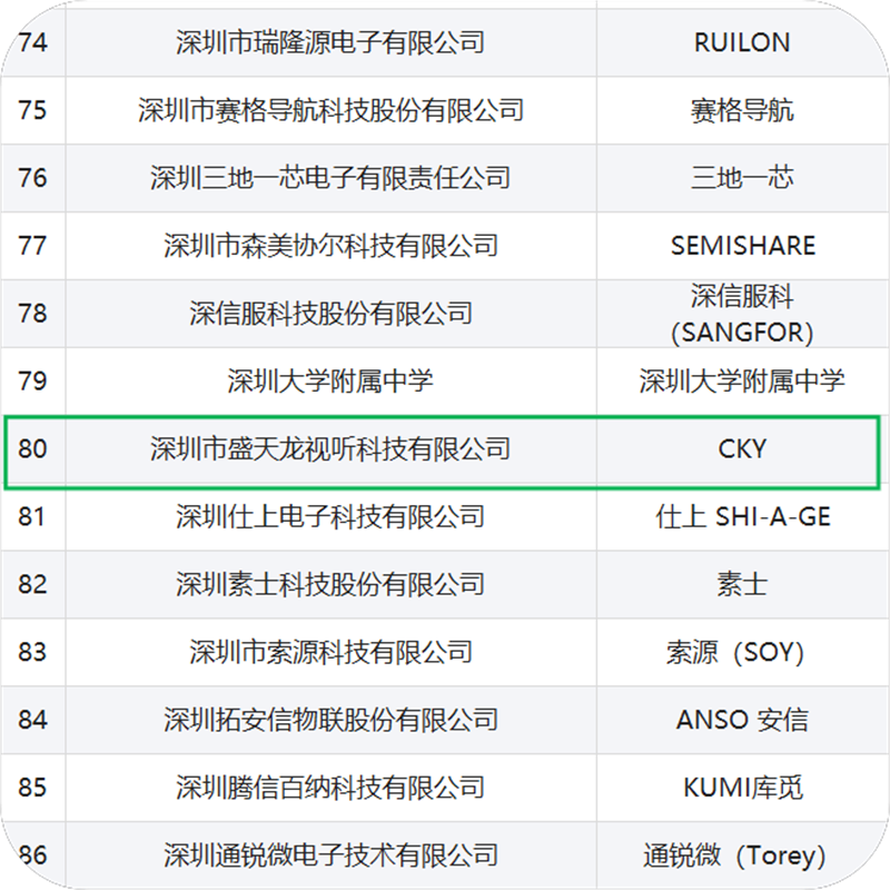 我会副会长陈伟松单位-深圳市盛天龙视听科技有限公司旗下品牌CKY成功入选第二十届“深圳知名品牌”。