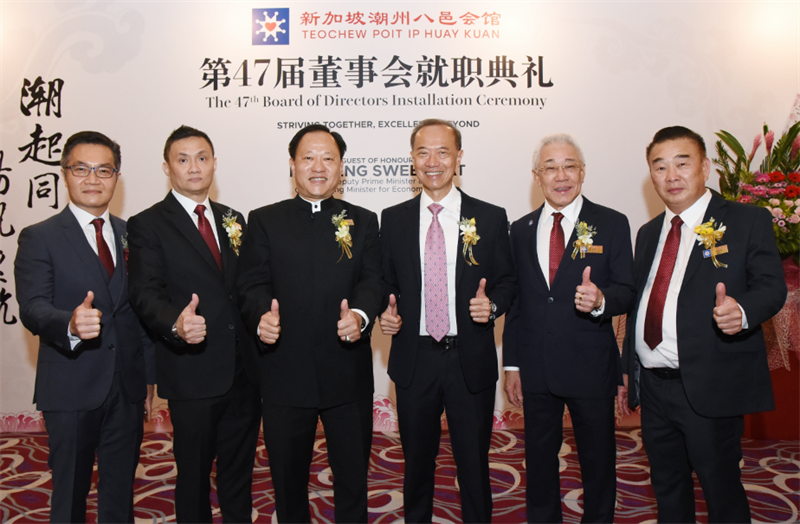 新加坡潮州八邑会馆第47届董事会正式就职典礼于5月2日在圣淘沙名胜世界宴会厅举行。我会会长郑汉明、常务副会长佘桂锡、常务理事蔡淳林、理事姚汉裕、理事苏楚红出席活动。