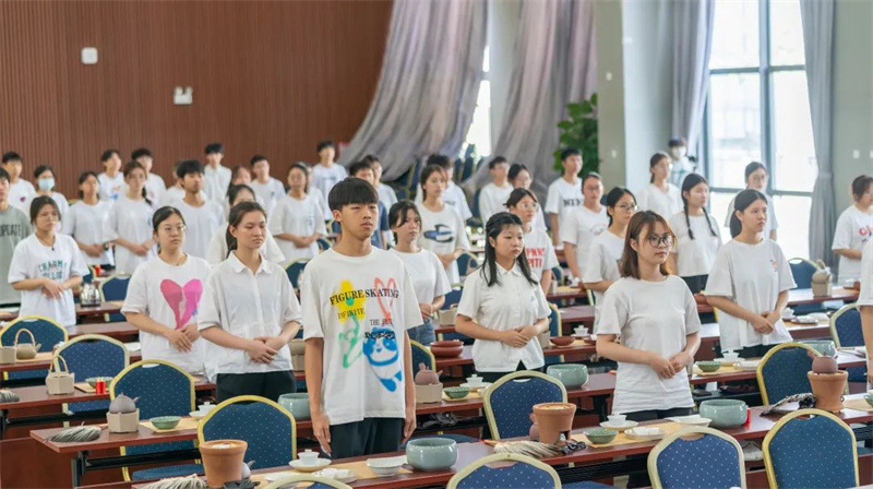 通过《茶艺》课程学习,108位同学完美演绎了中国茶艺的核心代表之一的潮州工夫茶艺,彬彬有礼,神情专注,步调一致,动作统一,充分展现了当代青年学子传承中华优秀茶文化、坚定文化自信的良好精神面貌,体现了深信学院在以美育人、以文化人,坚持立德树人、文化铸魂的教学成果,体现了优秀文化企业天池茶农(深圳)实业有限公司以实际行动助力传播和中华优秀茶文化。