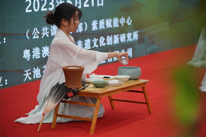 2023年5月21日,深圳信息职业技术学院公共教学部(素质赋能中心)与粤港澳大湾区非遗文化创新研究所主办,我会副会长马日龙企业天池茶农(深圳)实业有限公司赞助支持的国际茶日--“茶和世界,共享非遗”《茶艺》课教学成果展在学校会议中心215隆重举行。