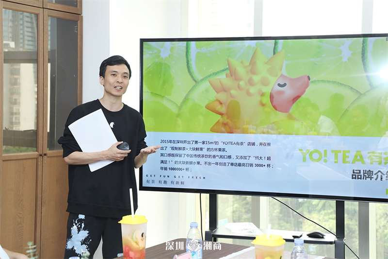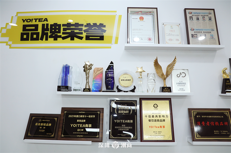2015年创始人在深圳开出了第一家15㎡的“YOUCHA有茶”店铺,并在当年研制推出了“现制鲜茶+大块鲜果”店铺,其口感既保留了中国传统茶饮的香气和口感,又添加了“超大!超满足!”的大块新鲜水果。仅在深圳一个市场“有茶黄盖方杯”每年销售>10,000,000杯,店铺辐射在加拿大、深圳、广州、普宁、惠州、东莞、河源等国家和多区域。