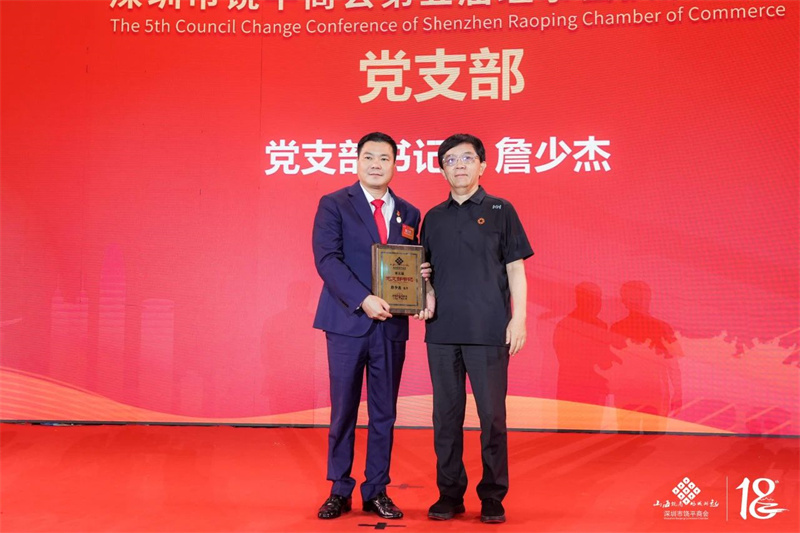 深圳市社会组织总会联合党委副书记、纪委书记张武波为深圳市饶平商会党支部书记詹少杰授牌。