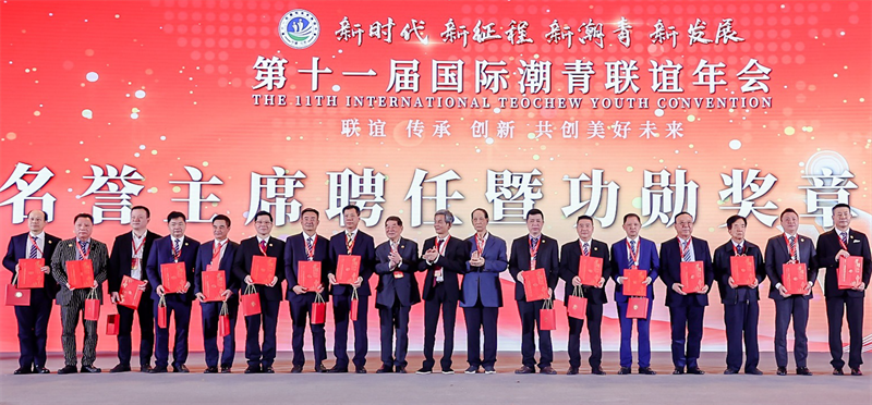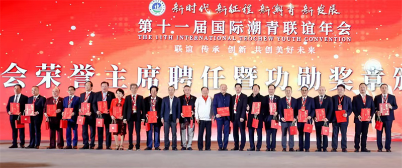 颁发第十一届国际潮青联谊年会荣、名誉主席证书及功勋奖章