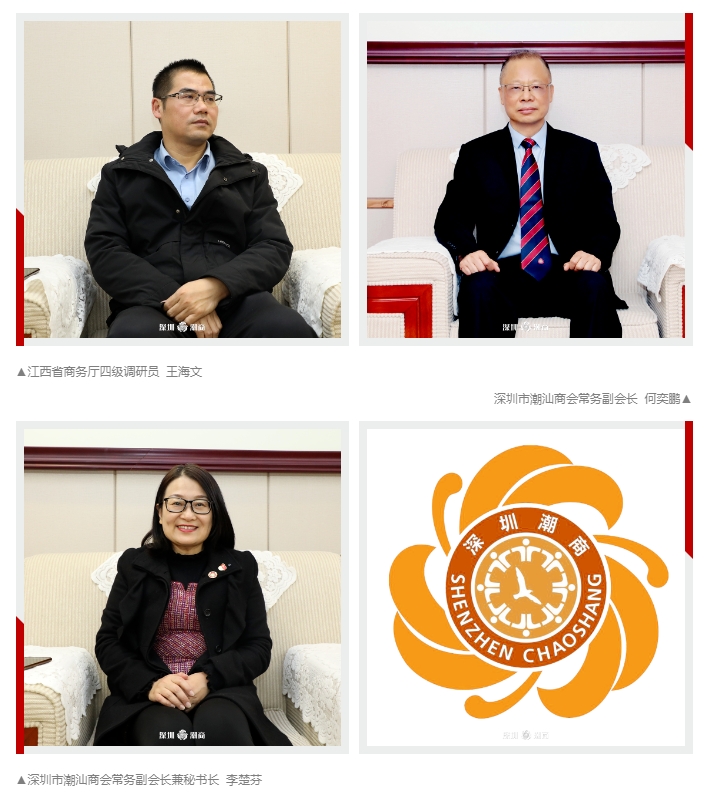 为增进潮商与赣商友谊,加强双方合作,2024年1月23日下午,江西省商务厅投资促进一处处长杨铮、四级调研员王海文来访我会。受到我会驻会会长、国际潮商经济合作组织执行主席黄育宏,我会荣誉会长、赣商联合总会执行会长王再兴,我会常务副会长、国际潮商经济合作组织秘书长何奕鹏,我会常务副会长兼秘书长李楚芬等热情接待。