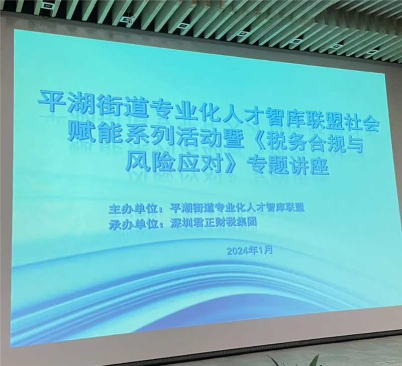 1月25日下午,我会监事单位——君正财税集团率先出击,为企业更好地掌握国家税法政策,有效提升税务知识水平及预防、处理风险的能力,特邀中山大学(会计学)石水平博士以《税务合规与风险应对》为主题给社区企业举办了一场专题知识讲座。