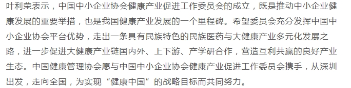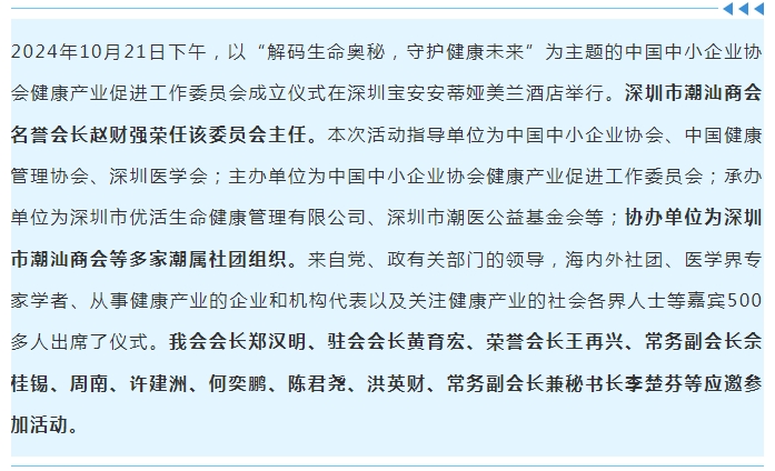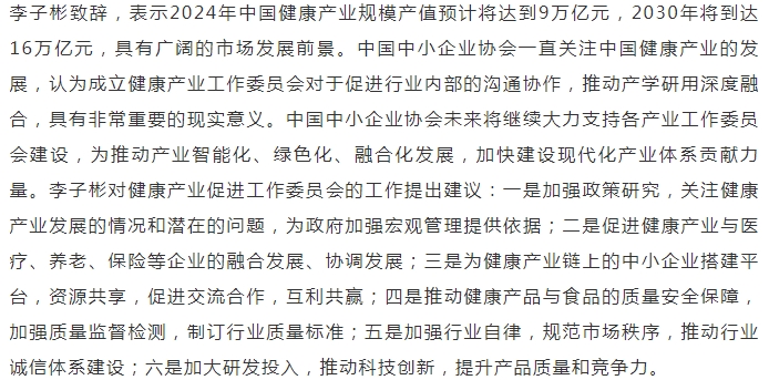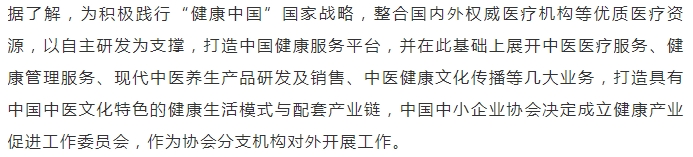 新闻来源:中国中小企业协会健康产业促进工作委员会 发布时间:2024年10月22日 我要分享