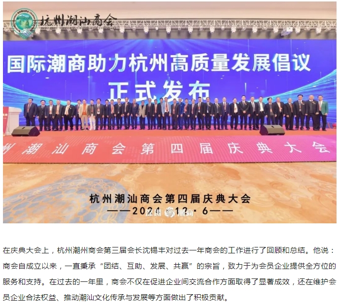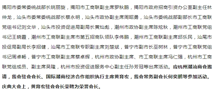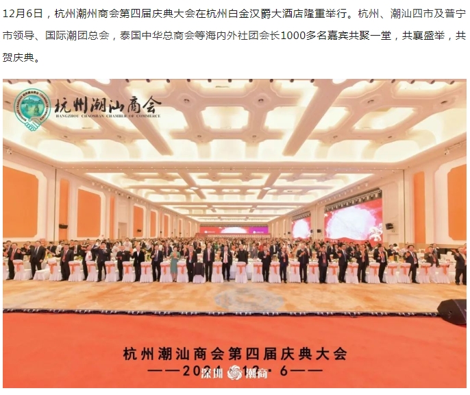 我会出席杭州潮汕商会第四届庆典大会