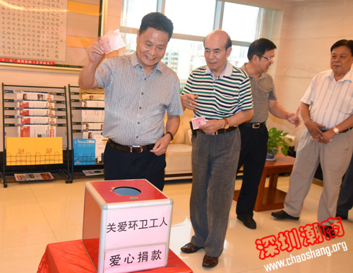 本月17日,商会在网站、微博、微信上发出倡议,号召会员参与“捐一元关爱钱,送一片关怀情”关爱环卫工人公益活动。6月25日,商会又组织部分会员参与在城管局举行的活动工作会。接下来,“关爱环卫工人”爱心捐款活动还会在潮汕商会会员群体中继续进行。