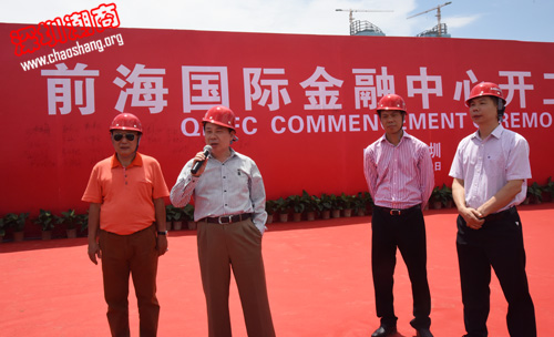 我会创会会长吴开松在仪式上发表了热情洋溢的讲话,他说经过精心的准备工作,前海项目开工了,在前海最核心的地块将建成现代化的金融中心,标志着前海项目取得了实质性进展,为深圳潮商承担历史性责任迈出了坚定的一个步伐。他希望各方团结协作,尽职尽力,将项目打造成为充满现代化元素、高品质的国际金融中心,打造成有国际影响力的标志性城市综合体。