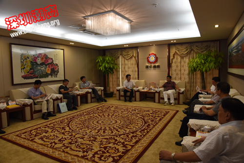 2015年8月1日上午,吉安市副市长贺喜灿率领访问团到访我会,受到我会创会会长吴开松、驻会常务副会长黄育宏,深圳市“两新”组织工委副书记王荫琦,我会党委书记邓东,副会长兼秘书长丁伟斌,党委副书记姚欣强,党委办公室主任黄耀光等的热情接待。丁伟斌陪同贺喜灿一行参观了商会并介绍了商会情况。