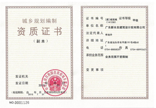 2015年7月,我会副会长李旭升旗下广东新长安建筑设计院有限公司的城乡规划编制资质荣升为甲级资质。