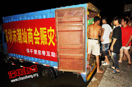 商会执行会长黄榕城捐助十万斤大米送往潮南,他本人和深圳市揭阳商会捐款二百万,新浩爱心基金会捐助十万元,商会青年工作委员会也立即行动筹得10万元的救灾款,用于购买粮食运送灾区。
